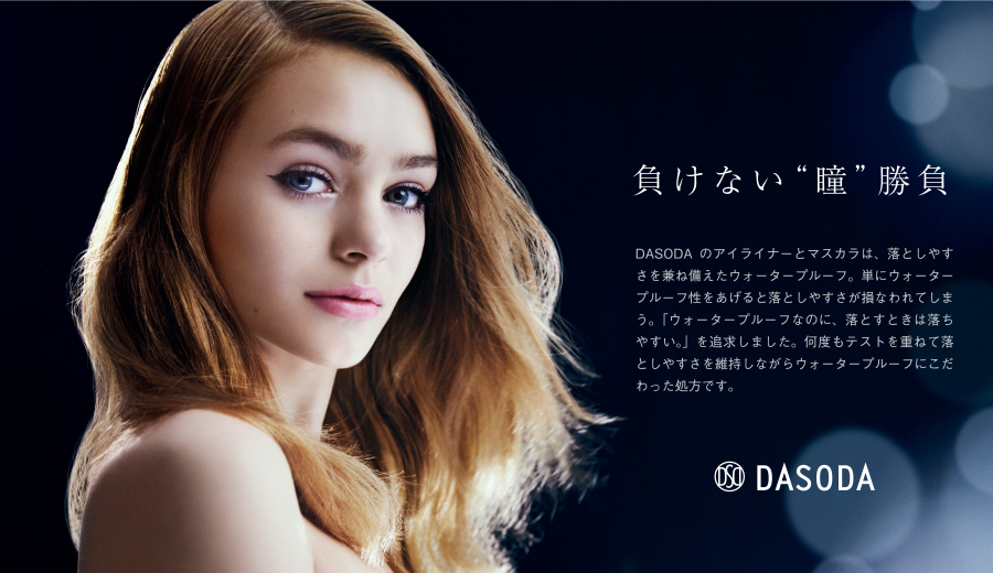 DASODAのアイライナーとマスカラは、落としやすさを兼ね備えたウォータープルーフ。単にウォータープルーフ性をあげると落としやすさが損なわれてしまう。「ウォータープルーフなのに、落とすときは落ちやすい。」を追求しました。何度もテストを重ねて落としやすさを維持しながらウォータープルーフにこだわった処方です。